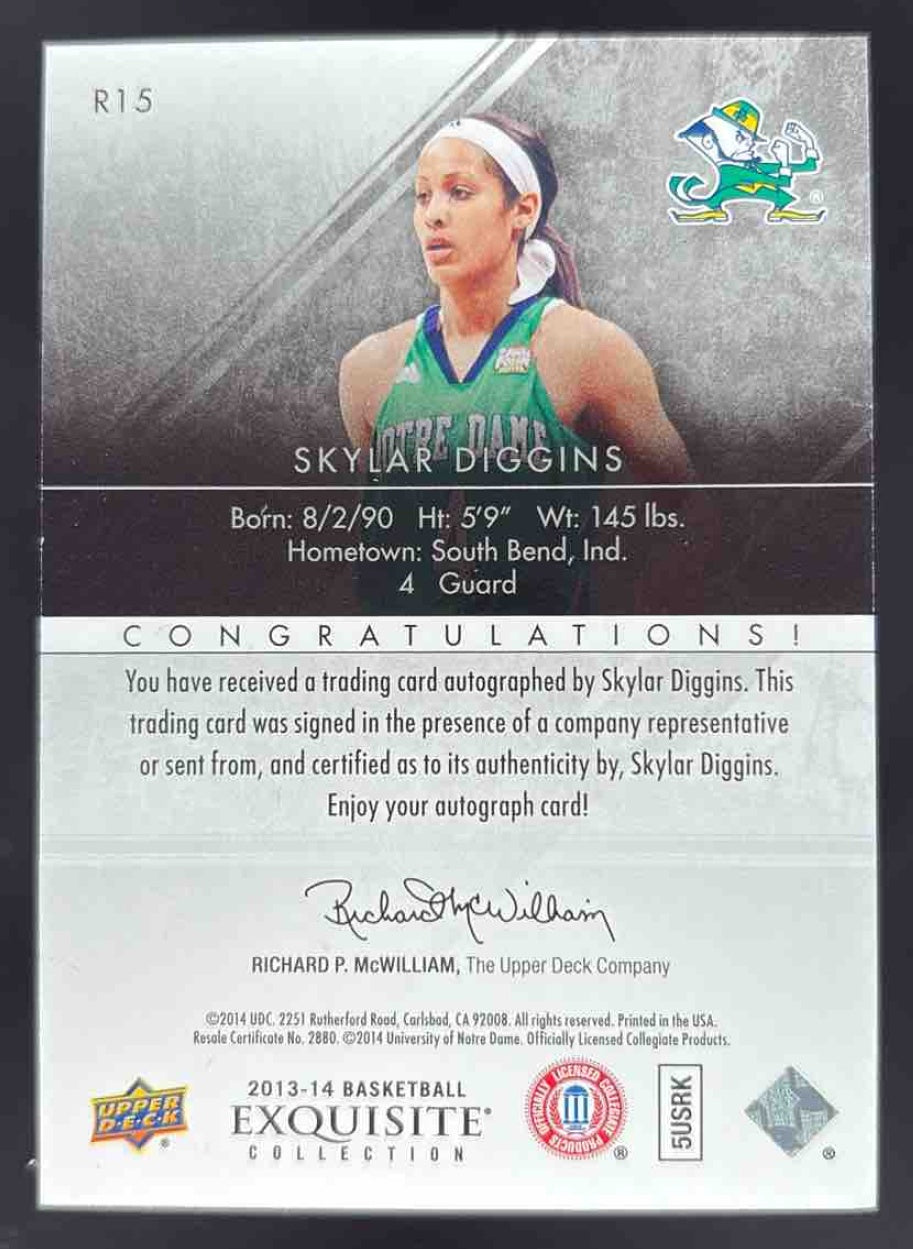 2013-14 Upper Deck Exquisite Rookie Autographs #R15 Skylar Diggins RC Auto /75