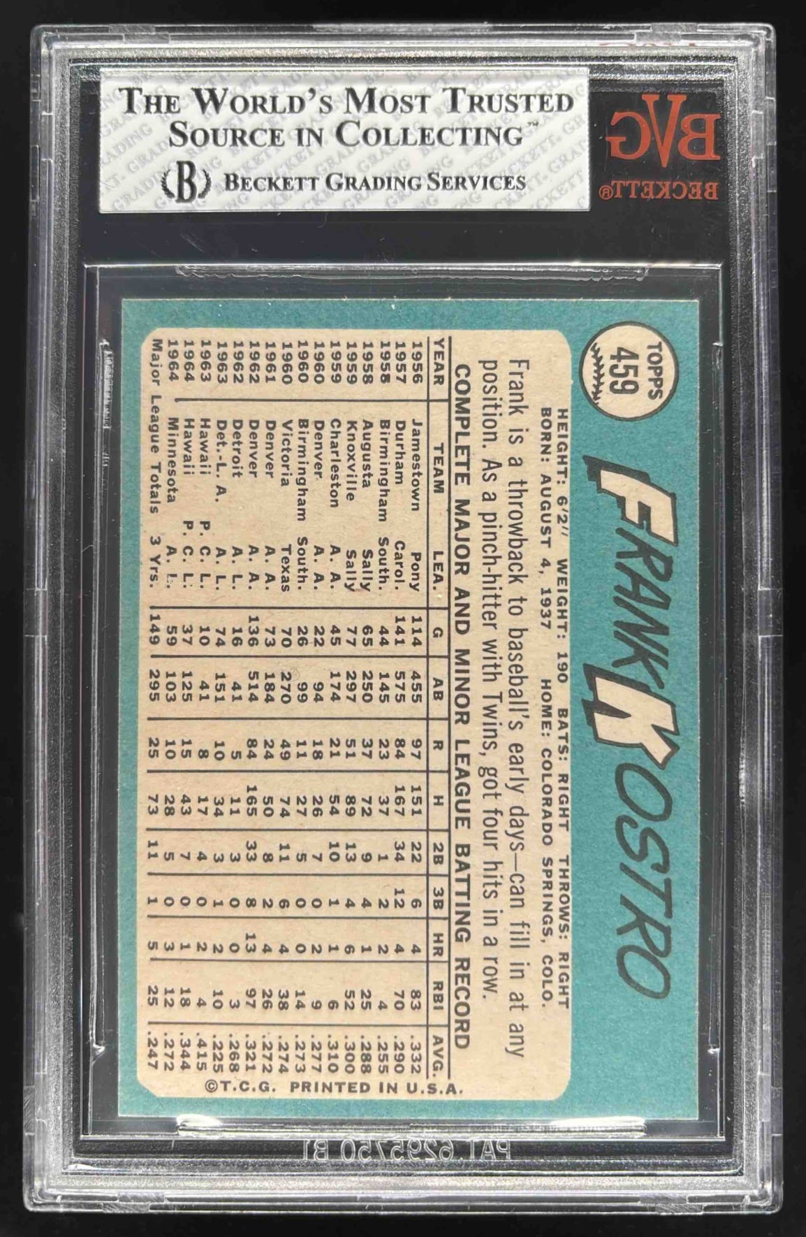 1965 Topps #459 Frank Kostro BGS 8