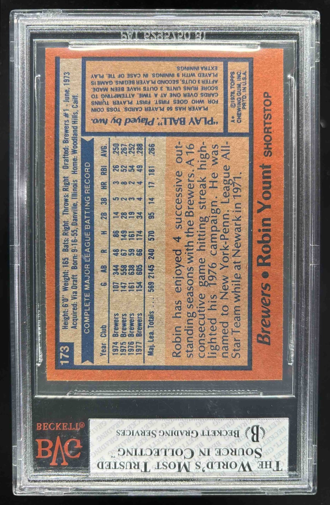 1978 Topps #173 Robin Yount BGS 8
