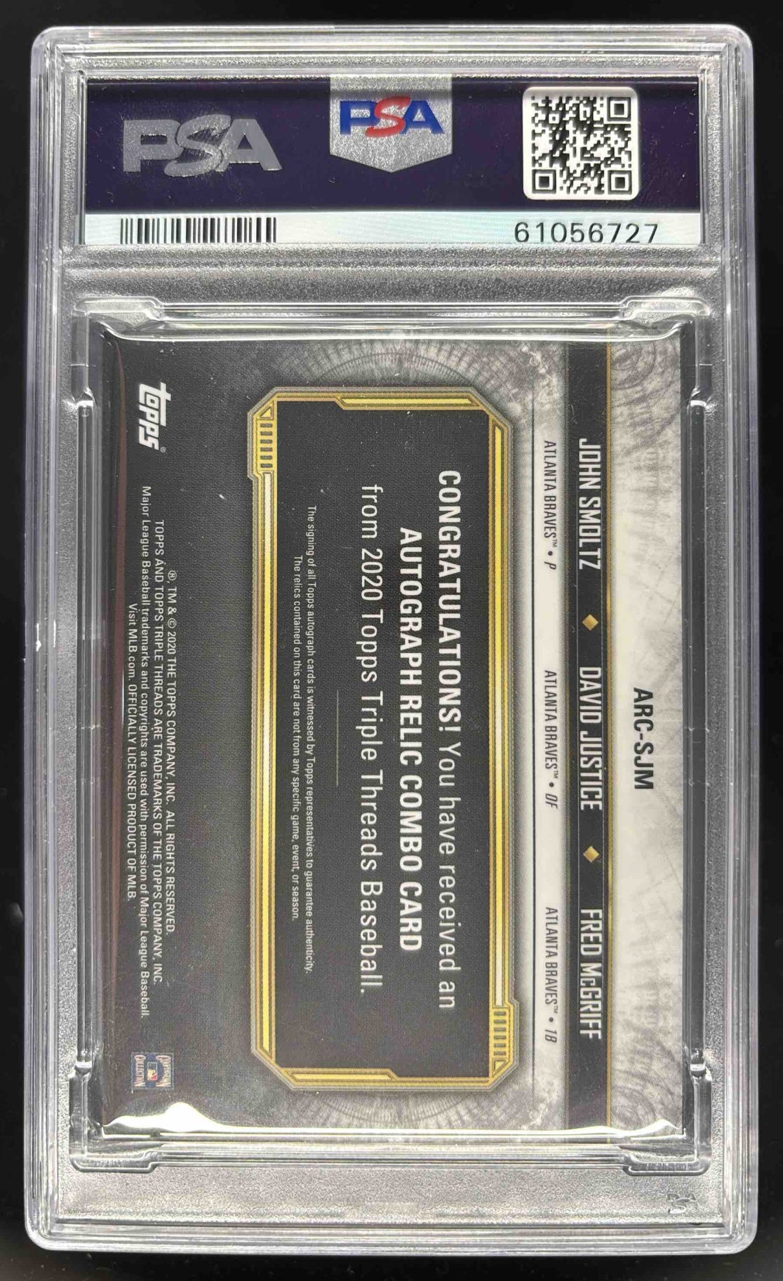 2020 Triple Threads Relic Combo John Smoltz David Justice McGriff Auto /36 PSA 9