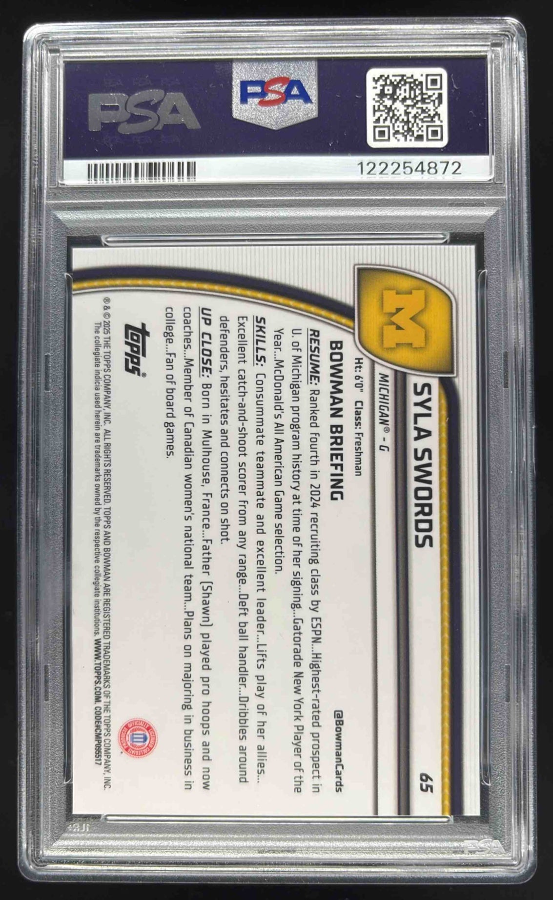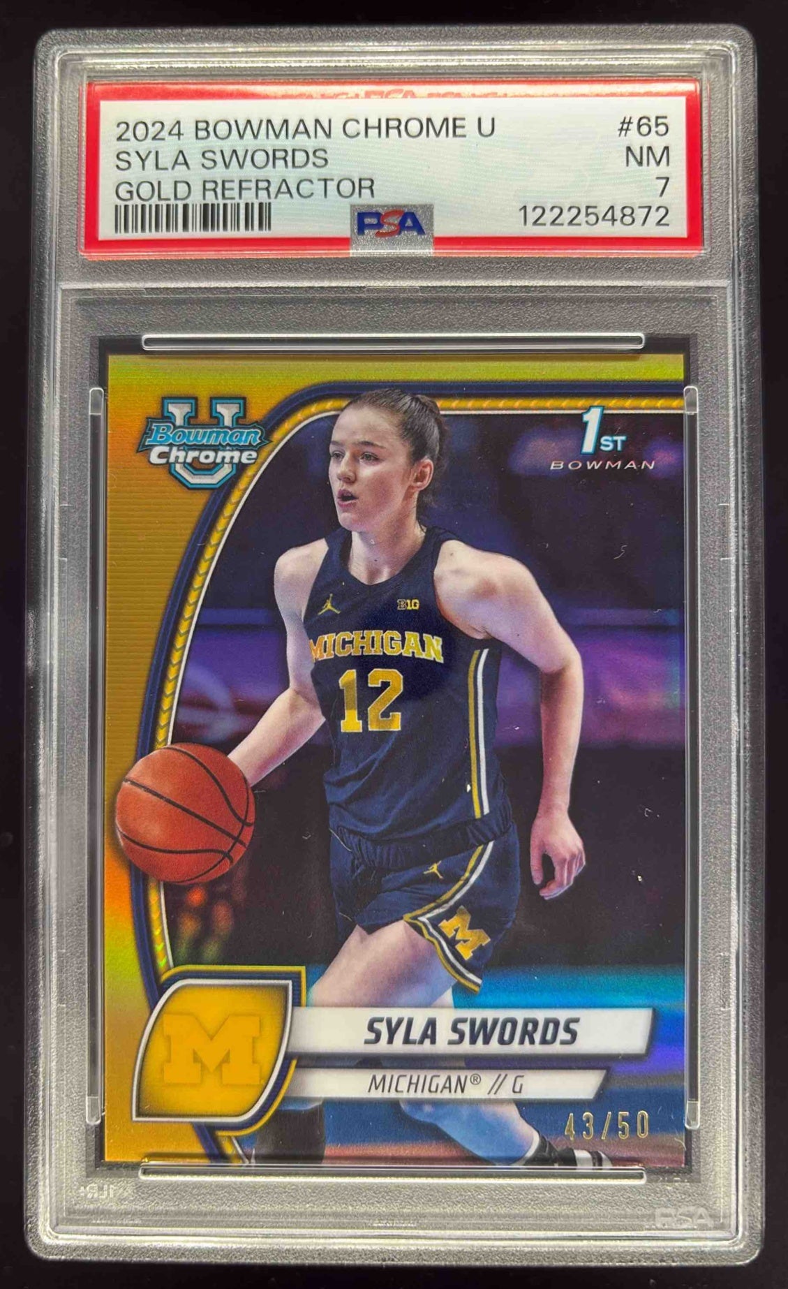 2024-25 Bowman University Chrome Gold Refractor #65 Syla Swords /50 PSA 7