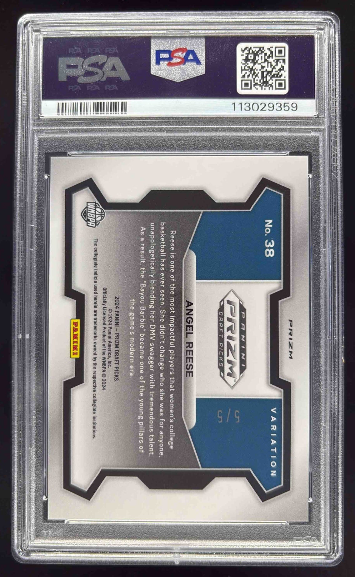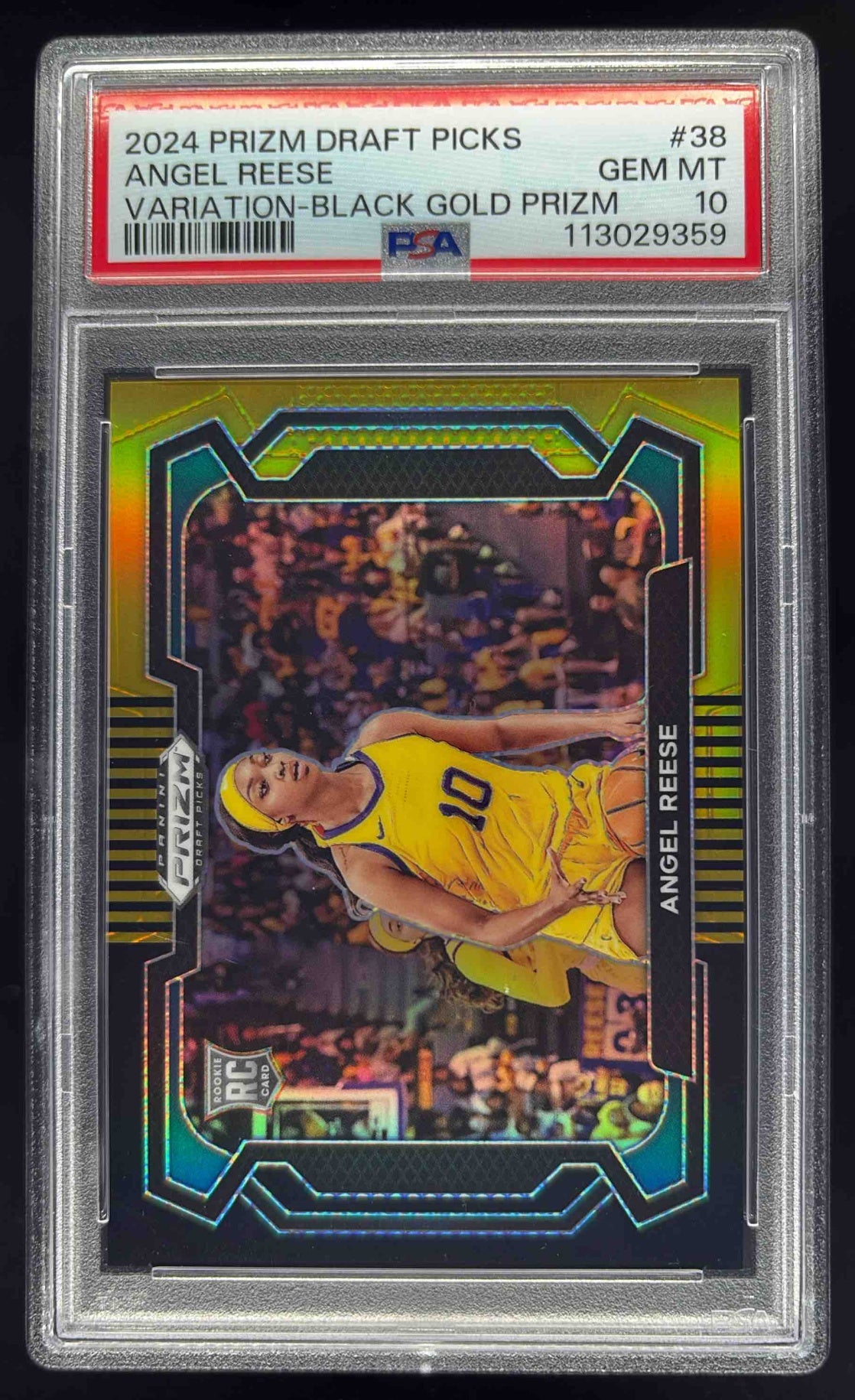 2024 Panini Prizm Draft Picks Collegiate Black Gold Angel Reese RC VAR /5 PSA 10