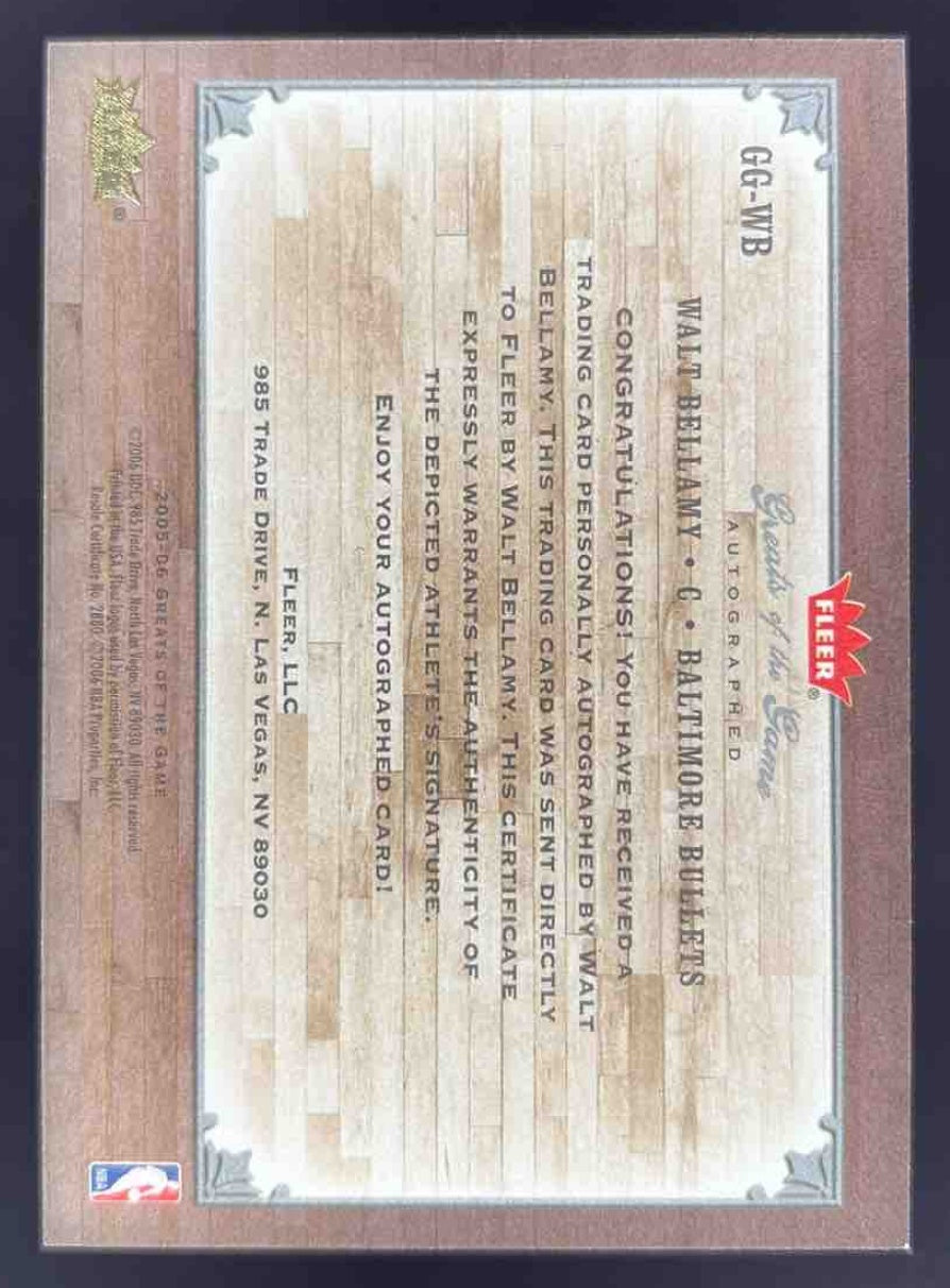 2005-06 Fleer Greats of the Game Autographs #GG-WB Walt Bellamy Auto