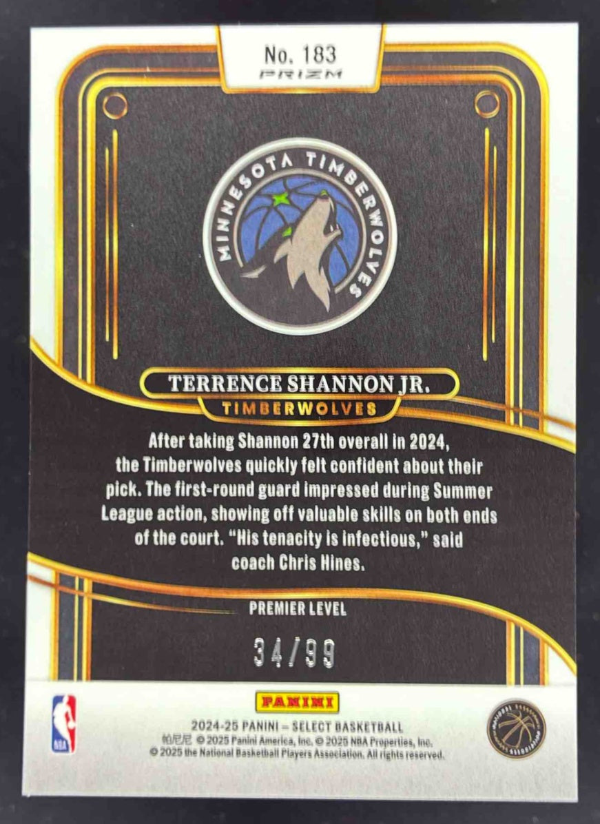 2024-25 Select Premier Purple Cracked Ice Prizm #183 Terrence Shannon Jr. RC /99