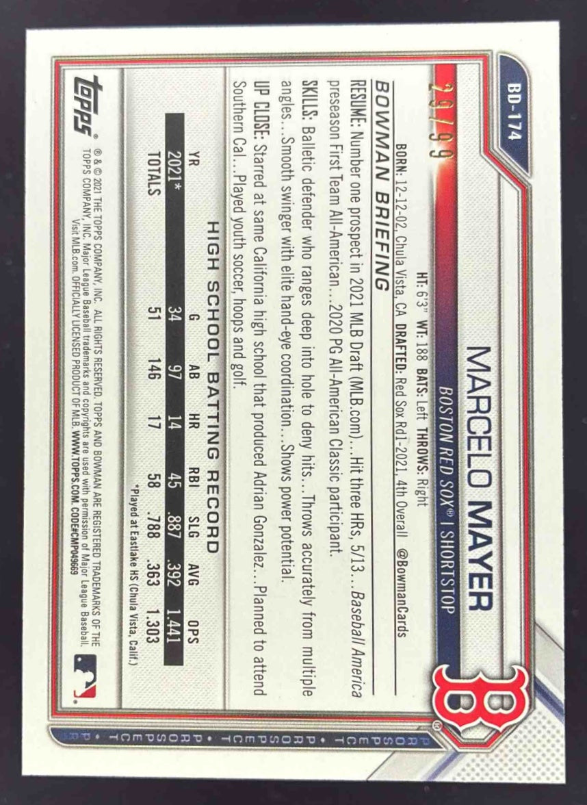 2021 Bowman Draft Green #BD-174 Marcelo Mayer RC /99