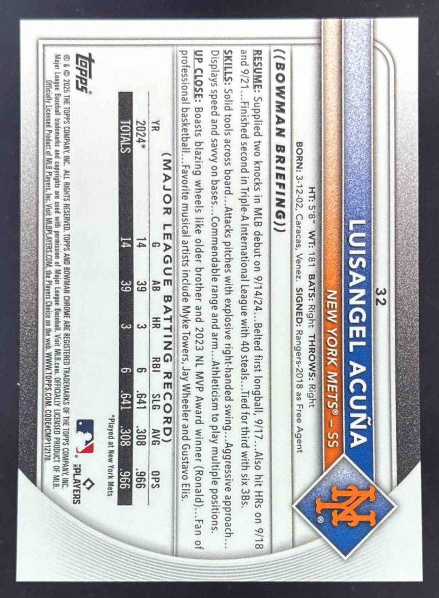 2025 Bowman Chrome Etched In Glass Variation #32 Luisangel Acuna RC