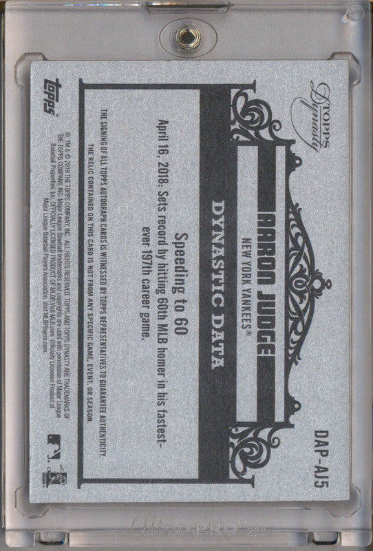 2019 Topps Dynasty Autograph Patches Silver #DAPAJ5 Aaron Judge Auto /5