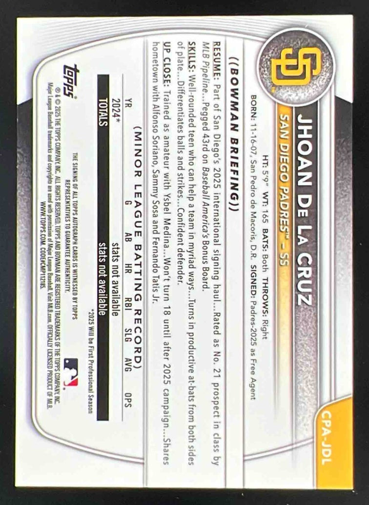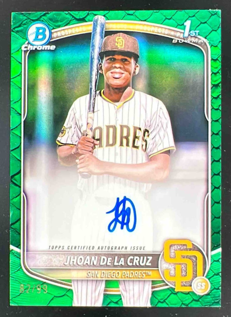 2025 Bowman Chrome Autograph Reptilian Green #JDL Jhoan De La Cruz RC Auto /99