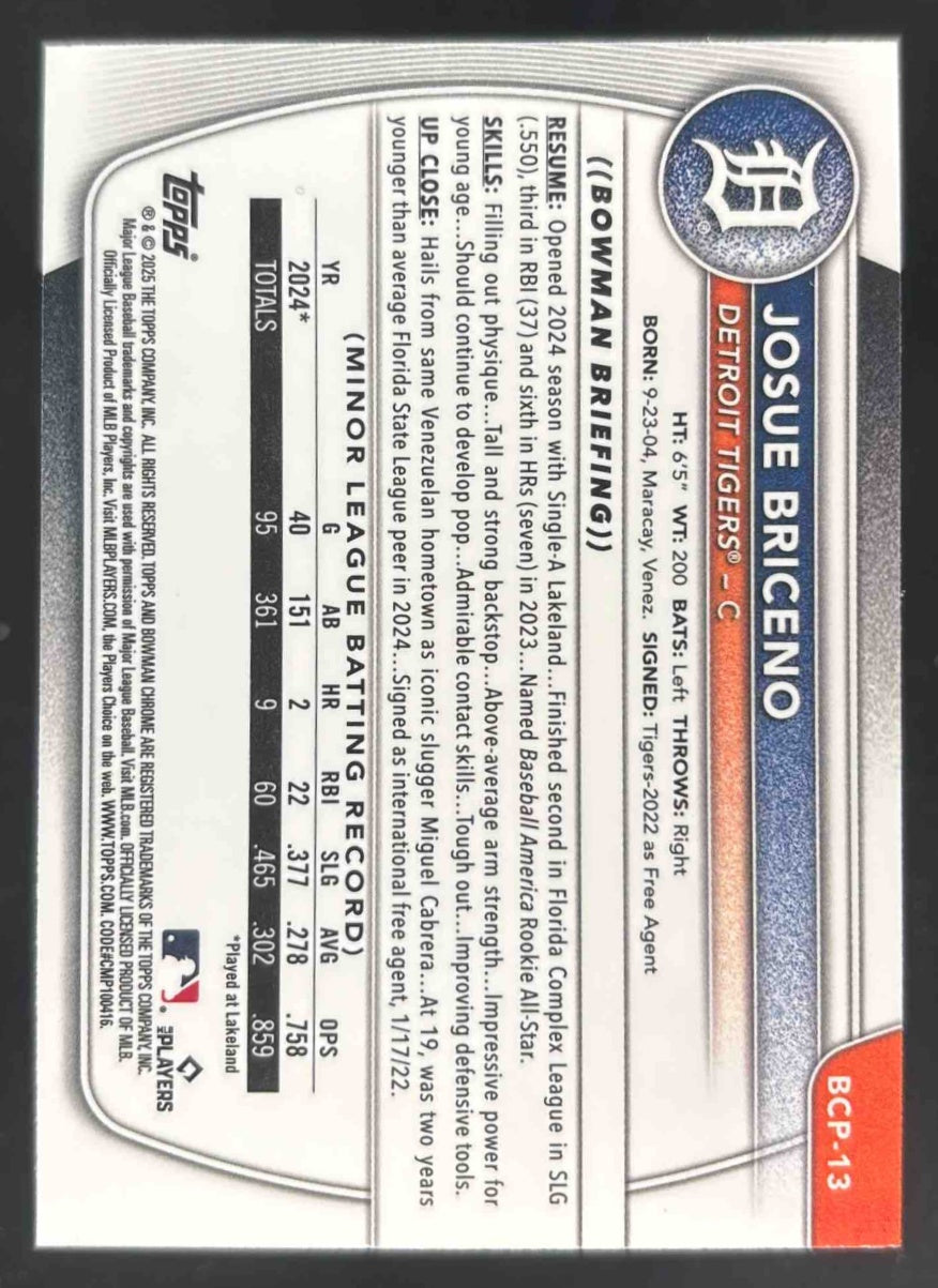 2025 Bowman Chrome Prospects Green Grass Refractor #BCP-13 Josue Briceno RC /99