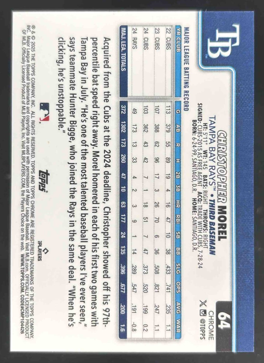 2025 Topps Chrome Sapphire Red Refractor #64 Christopher Morel /5