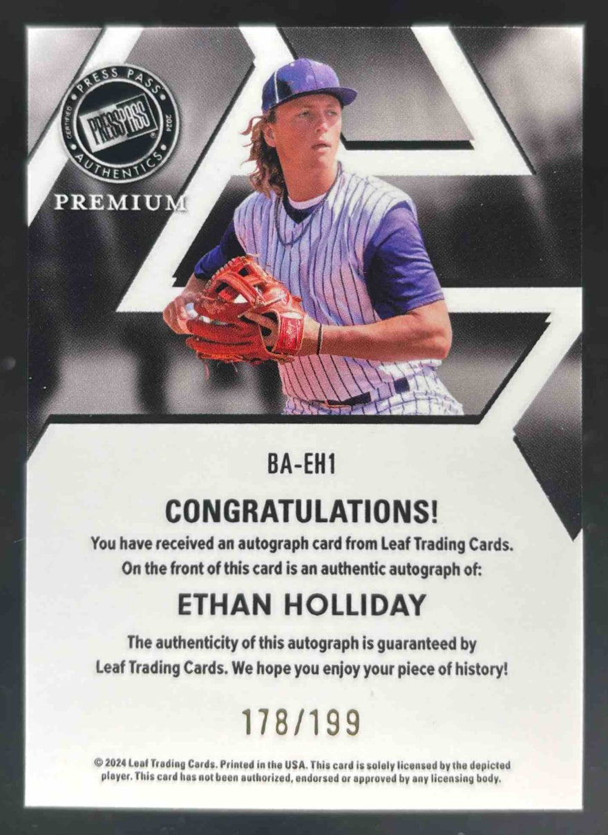 2024 Leaf Press Pass Premium Autograph Brite Brite Ethan Holliday Auto /199