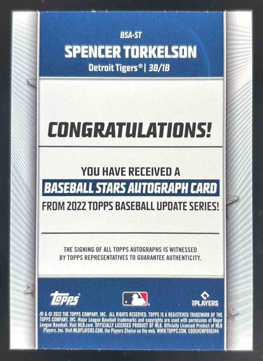 2022 Topps Update Baseball Stars Black #BSA-ST Spencer Torkelson RC Auto /199