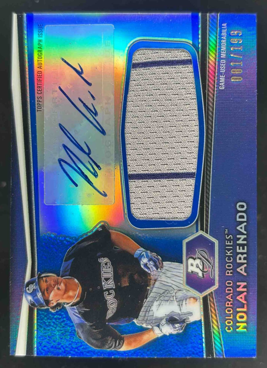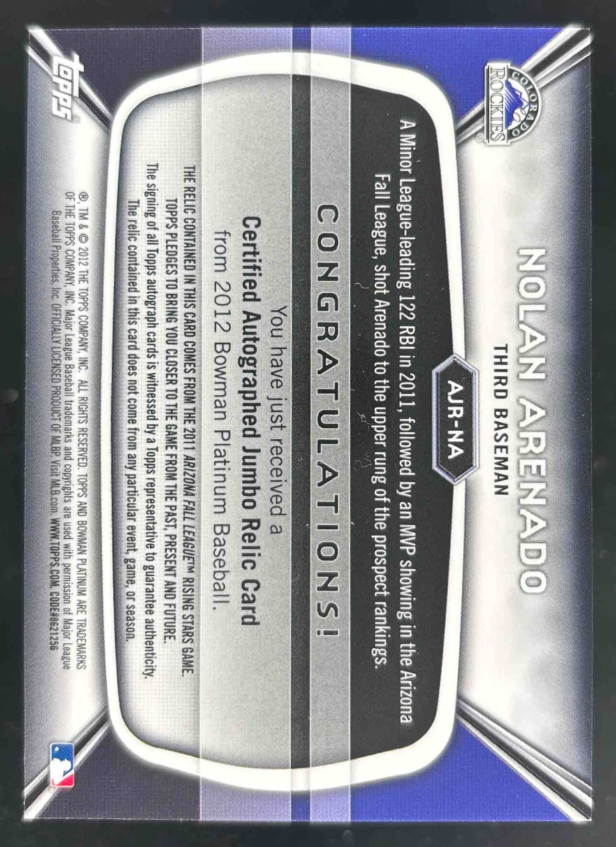 2012 Bowman Platinum Jumbo Relic Blue Refractors #AJR-NA Nolan Arenado Auto /199