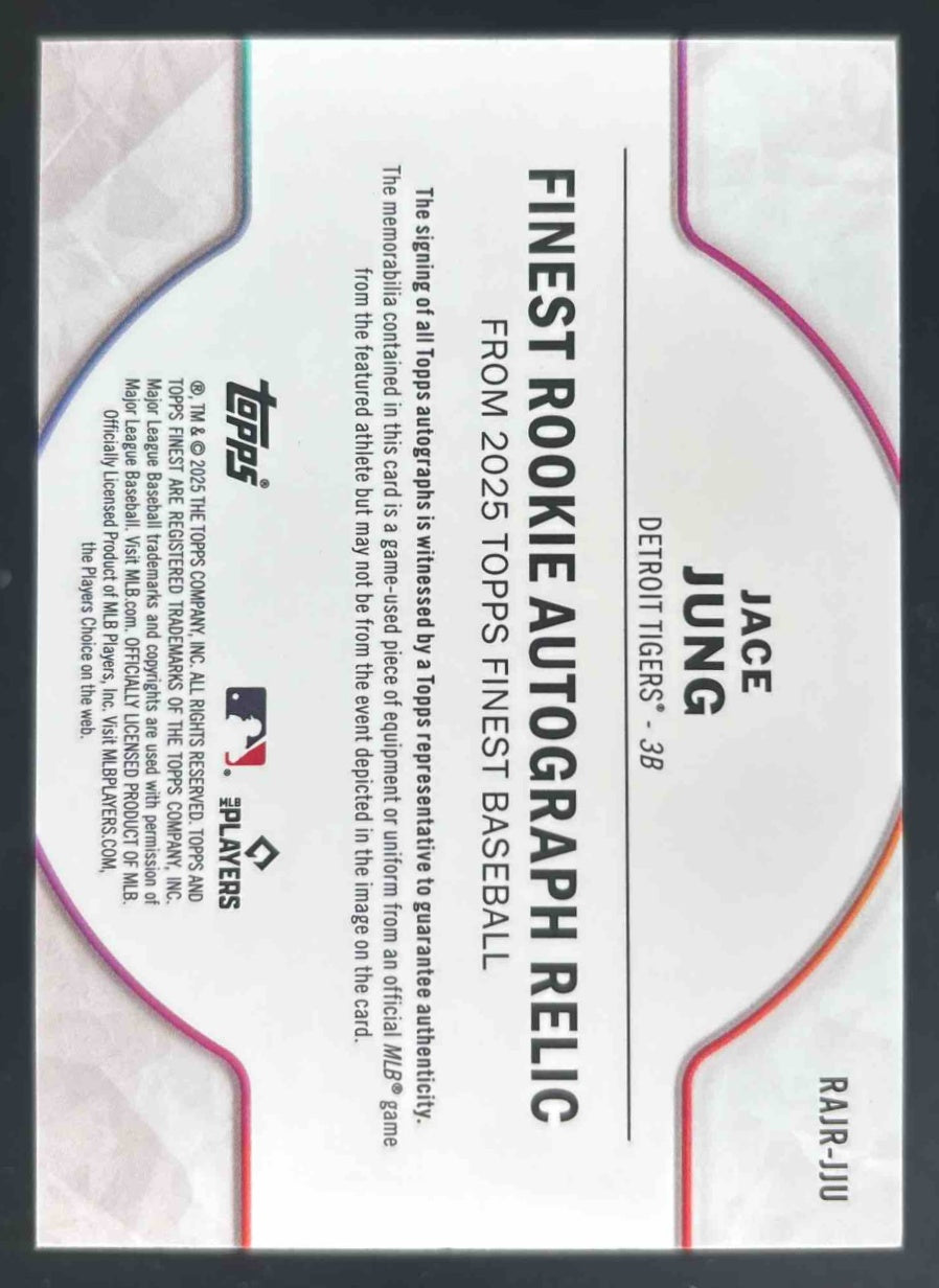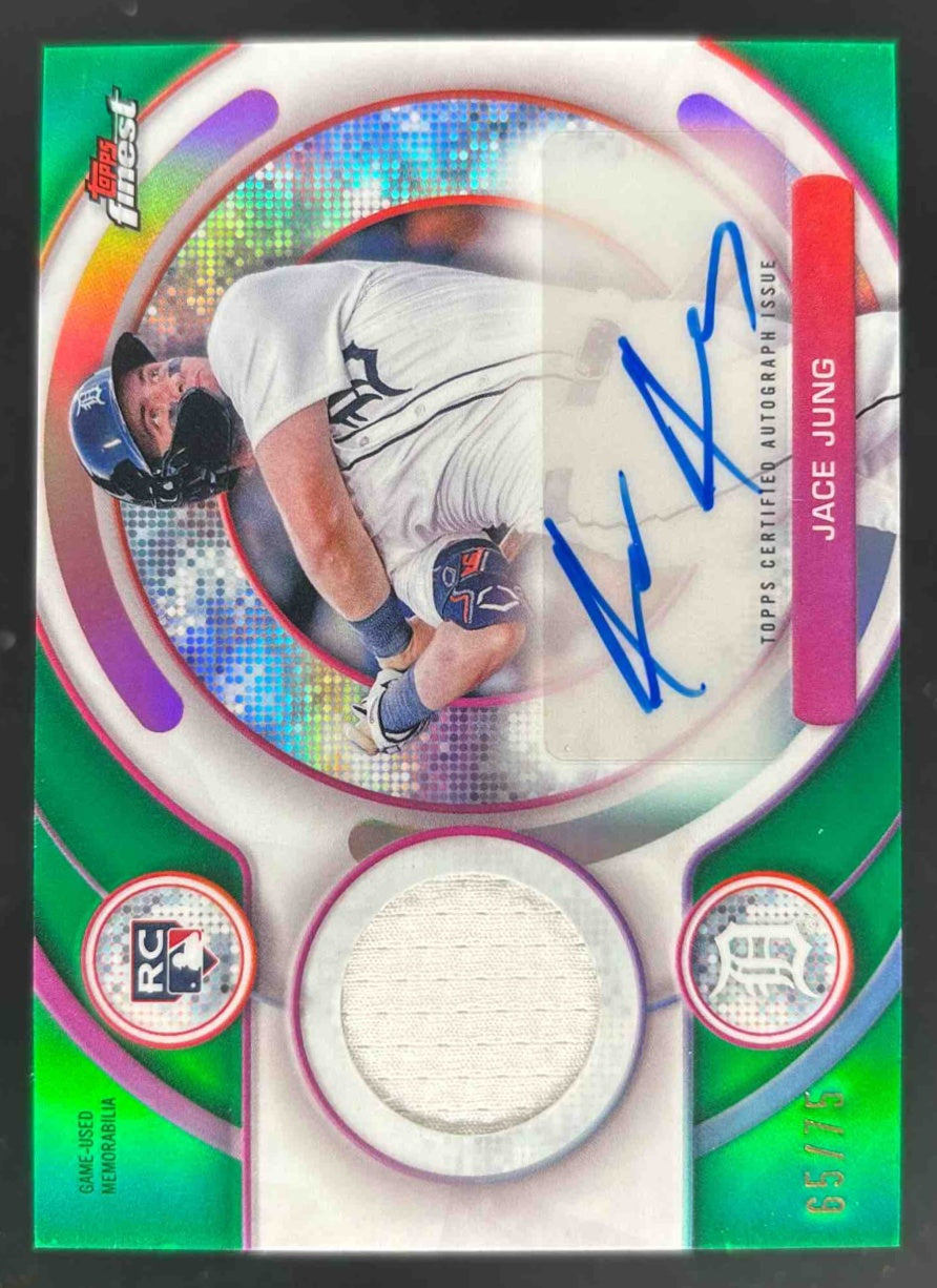 2025 Topps Finest Rookie Relic Green Refractor #RAJR-JJU Jace Jung RC Auto /75