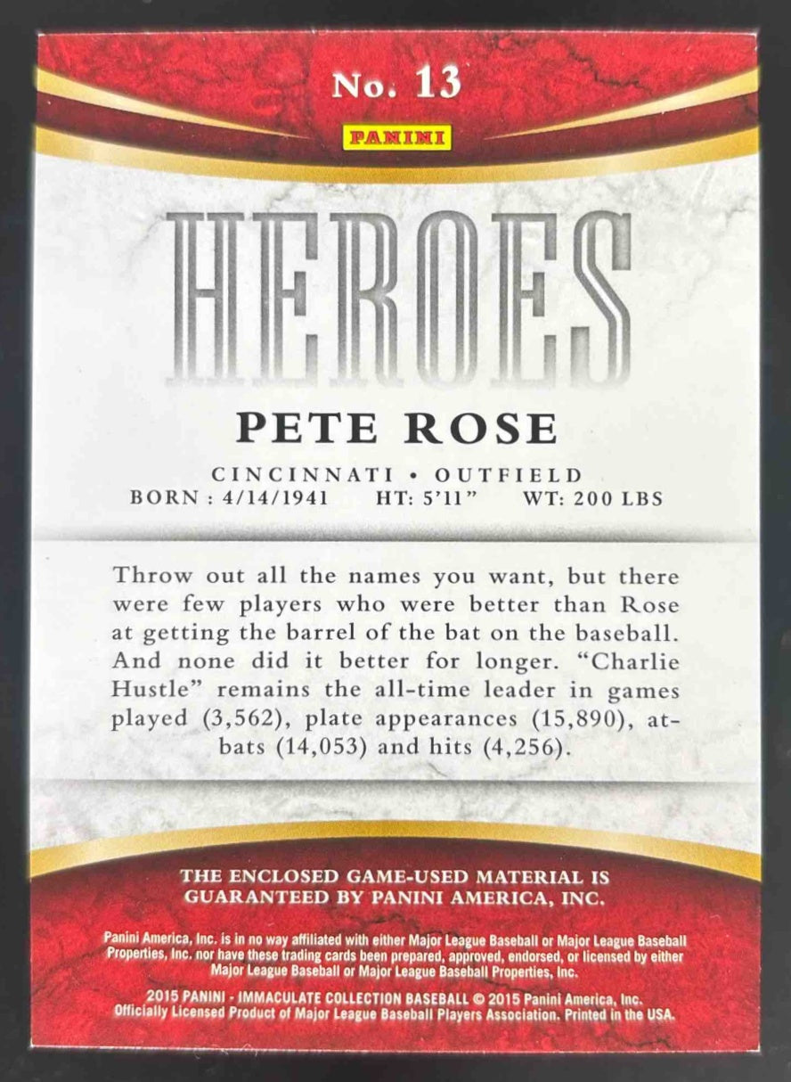 2015 Immaculate Collection Immaculate Heroes Materials #13 Pete Rose /49