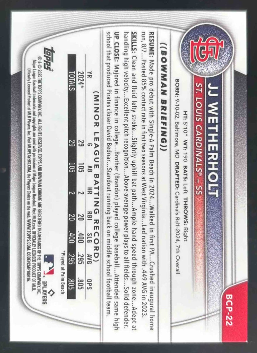 2025 Bowman Chrome Purple Geometric Refractor #BCP-22 JJ Wetherholt RC /250