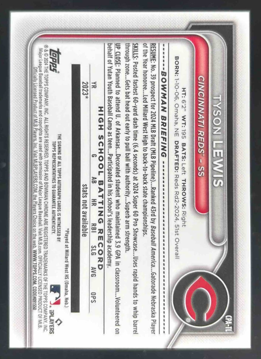 2024 Bowman Draft Chrome Blue Wave Refractor #CPA-TL Tyson Lewis RC Auto /150