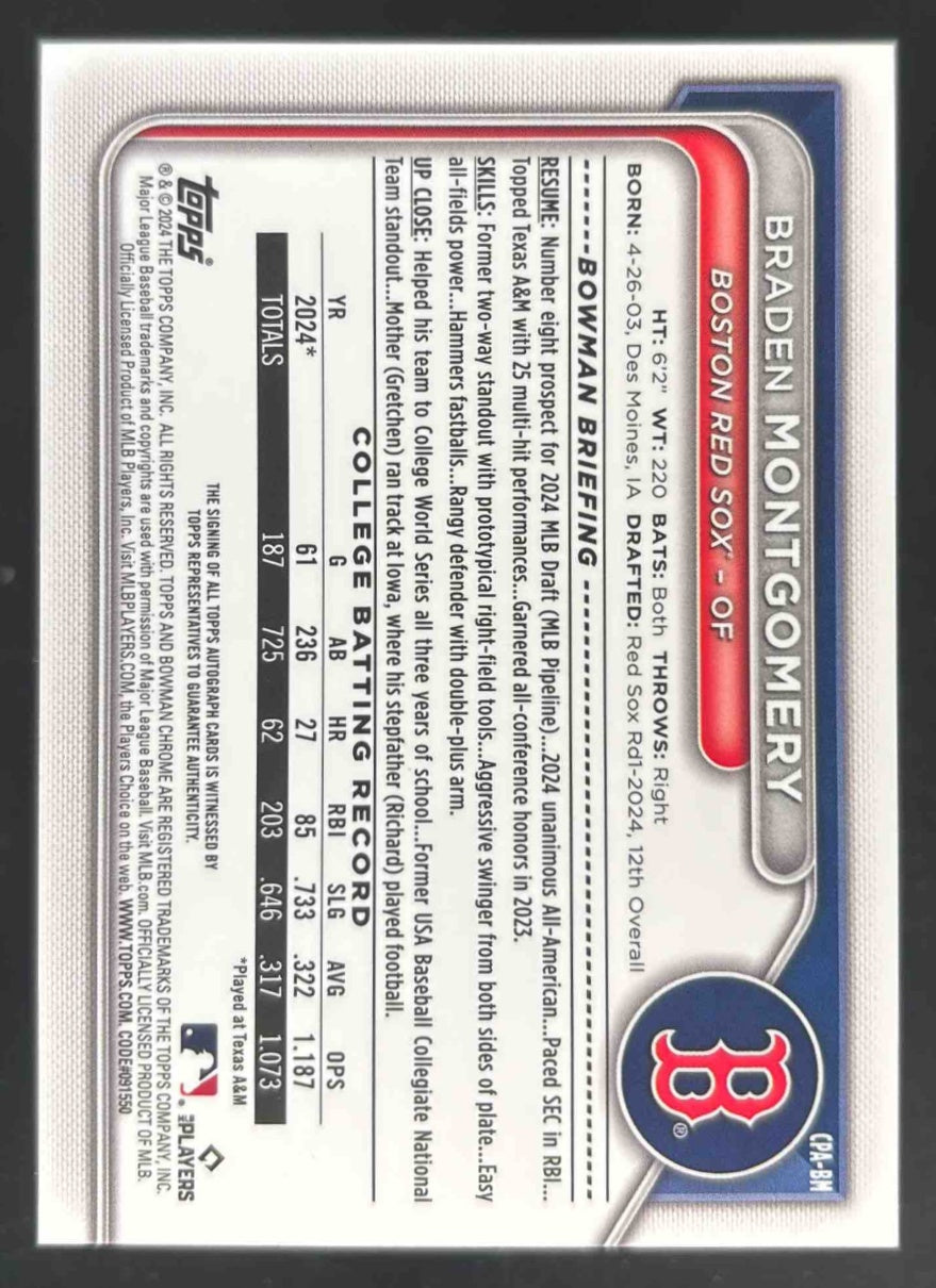 2024 Bowman Draft Sapphire Chrome Green #CPA-BM Braden Montgomery RC Auto /99