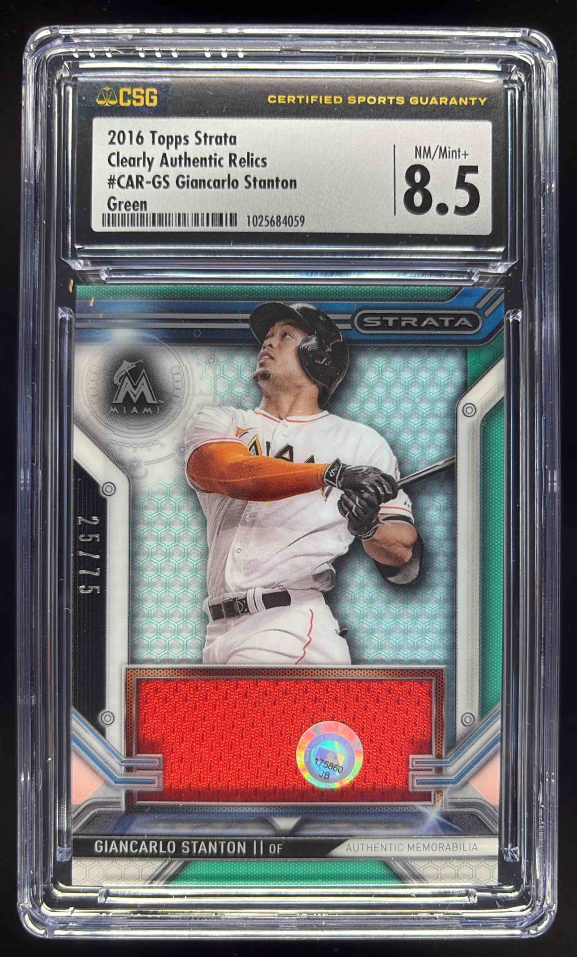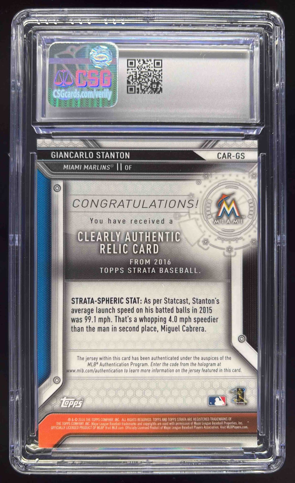 2016 Topps Strata Clearly Authentic Relics Green Giancarlo Stanton /75 CSG 8.5