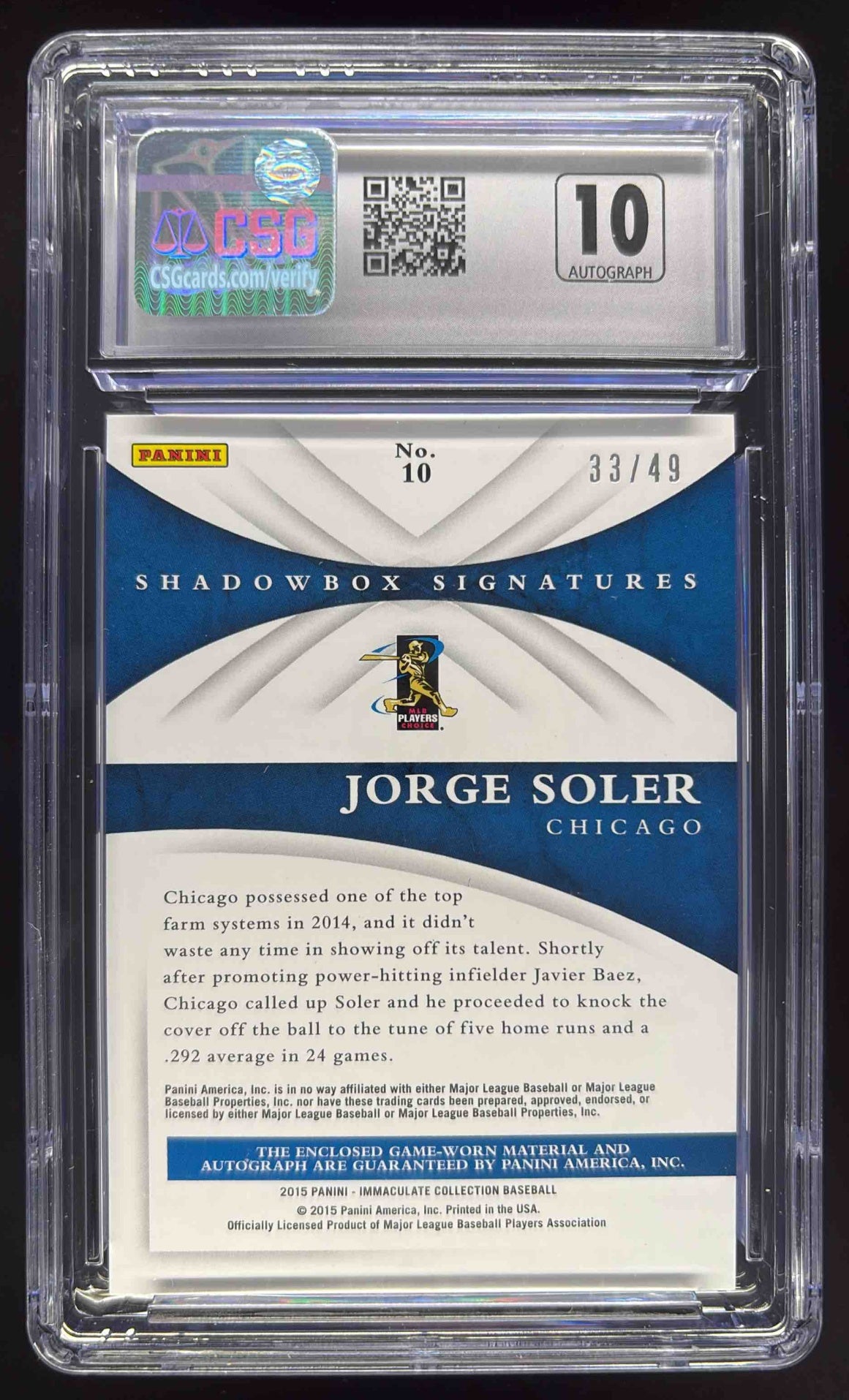 2015 Immaculate Collection Shadowbox Material #10 Jorge Soler RC Auto /49 CSG 9