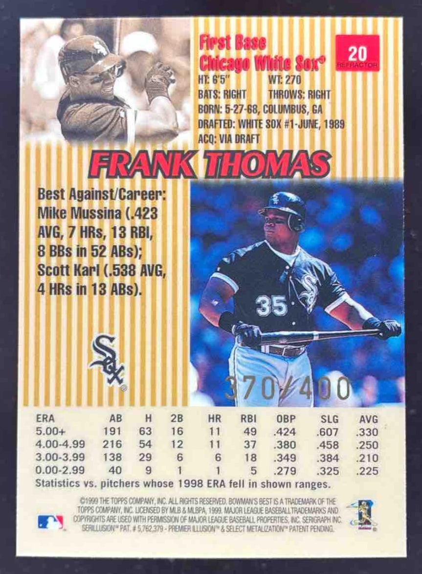 1999 Bowman 's Best Refractors #20 Frank Thomas /400