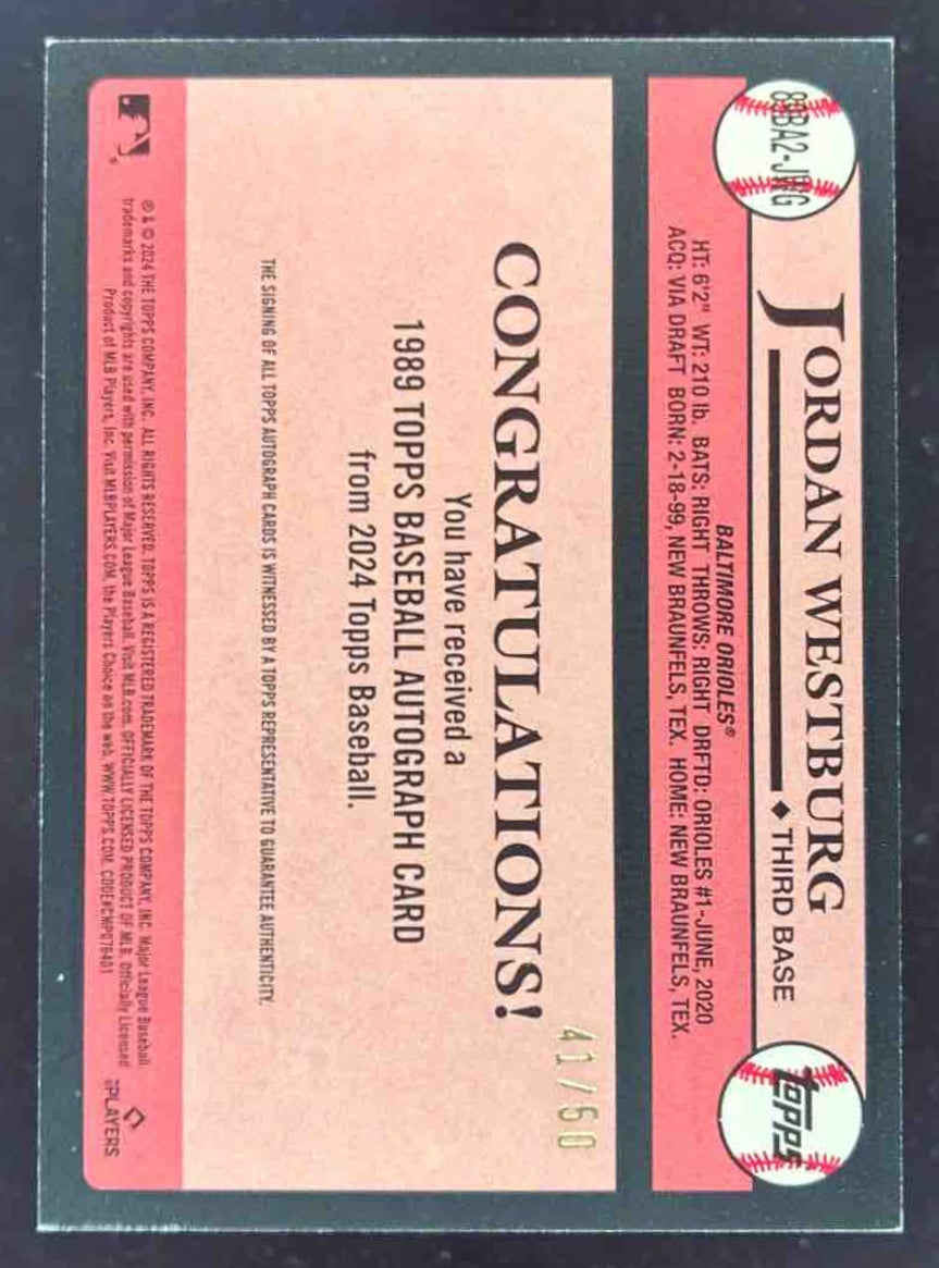 2024 Topps 1989 35th Anniversary Gold #89BA2-JWG Jordan Westburg RC Auto /50