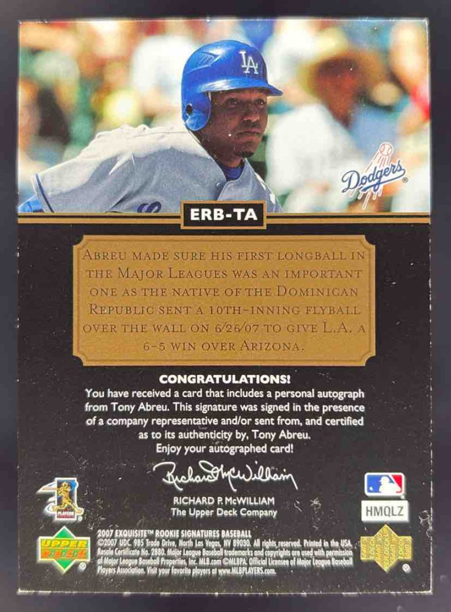 2007 Exquisite Collection Rookie Biography Silver Spectrum Tony Abreu RC Auto /5