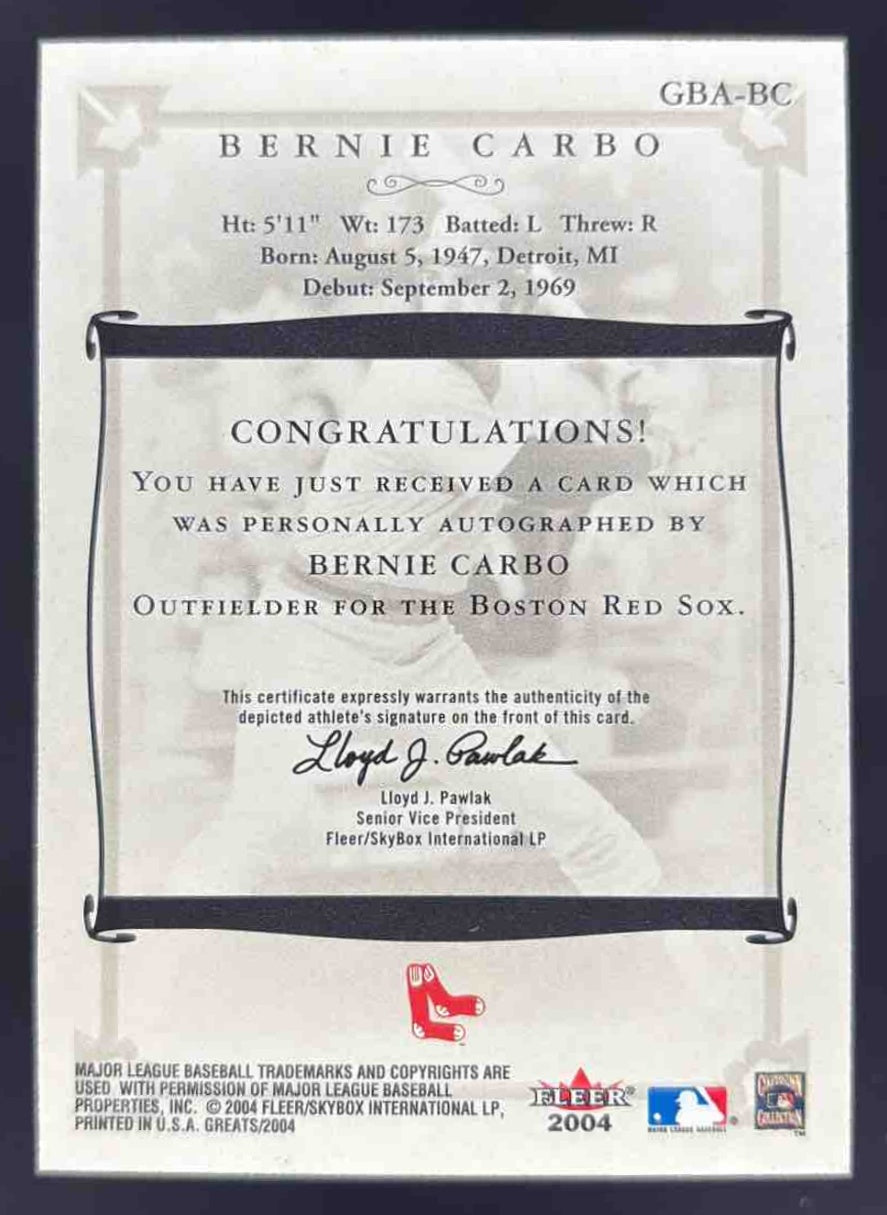 2004 Fleer Greats of the Game Autographs #GBA-BC Bernie Carbo Auto