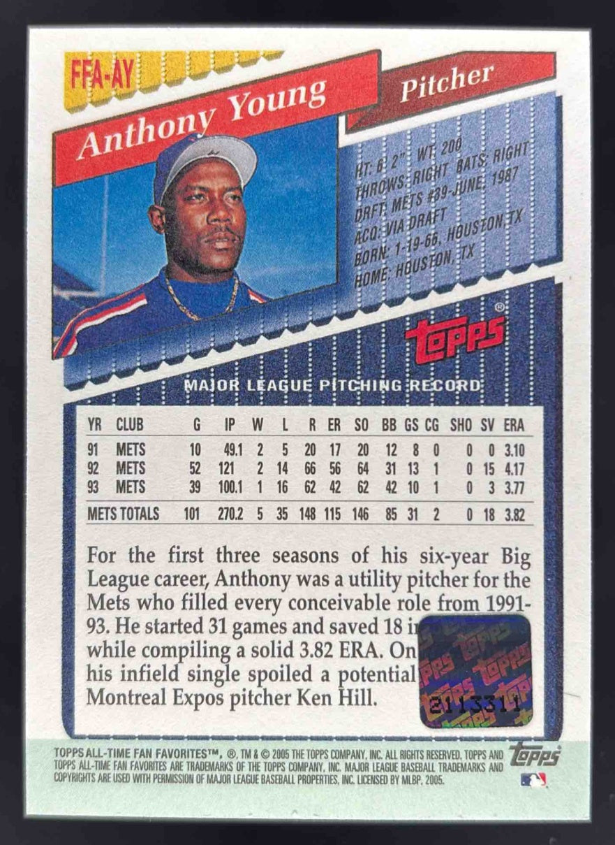 2005 Topps All-Time Fan Favorites Autographs #FFA-AY Anthony Young Auto