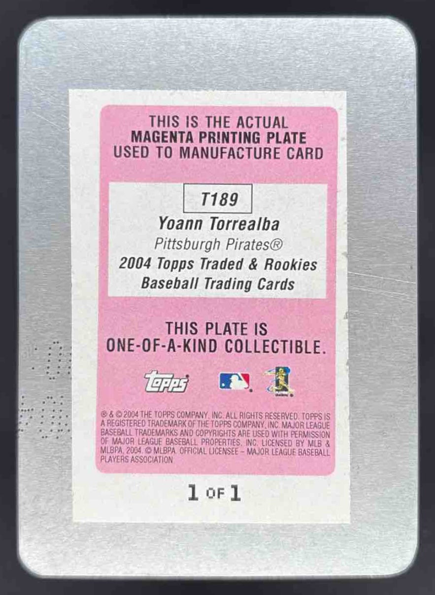 2004 Topps Traded & Rookies Printing Plates Magenta #T189 Yoann Torrealba RC 1/1