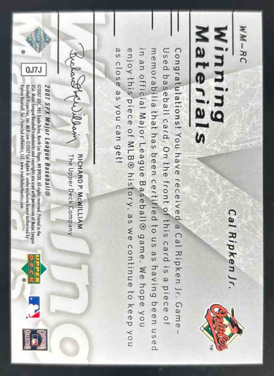 2007 SPx Winning Materials Dual Silver #WM-RC Cal Ripken Jr. /50