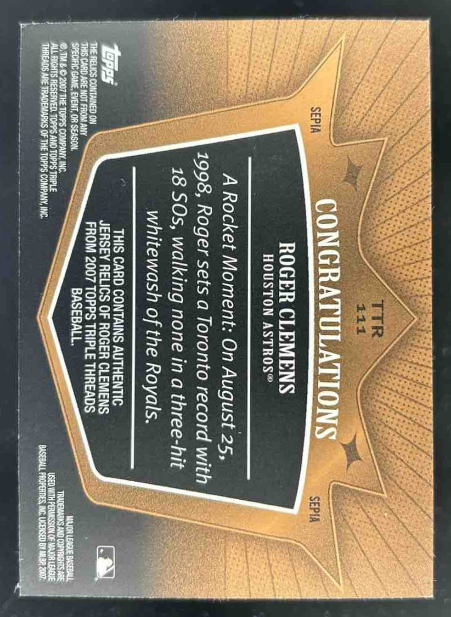 2007 Topps Triple Threads Relics Sepia #TTR111 Roger Clemens /27