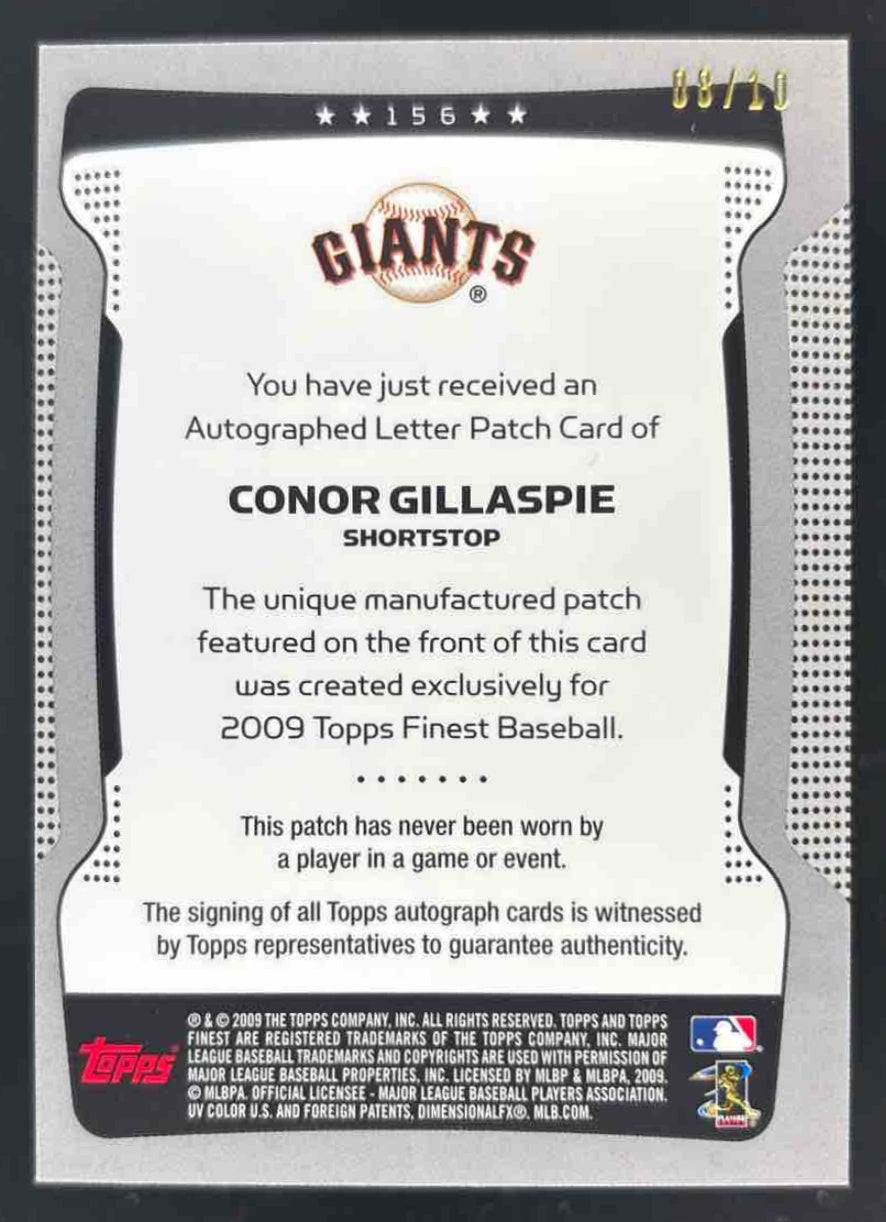 2009 Topps Finest Refractors Gold #156 Conor Gillaspie Autograph RC Auto /10
