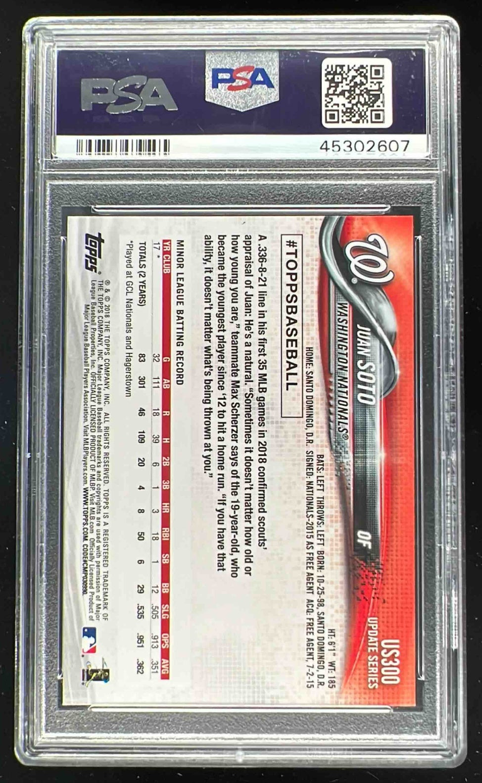 2018 Topps Update #US300a Juan Soto RC All-Star PSA 9