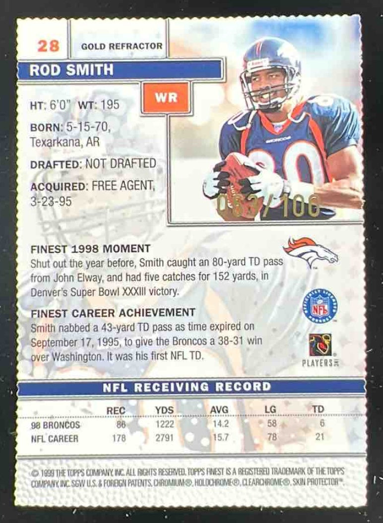 1999 Topps Finest Gold Refractors #28 Rod Smith /100