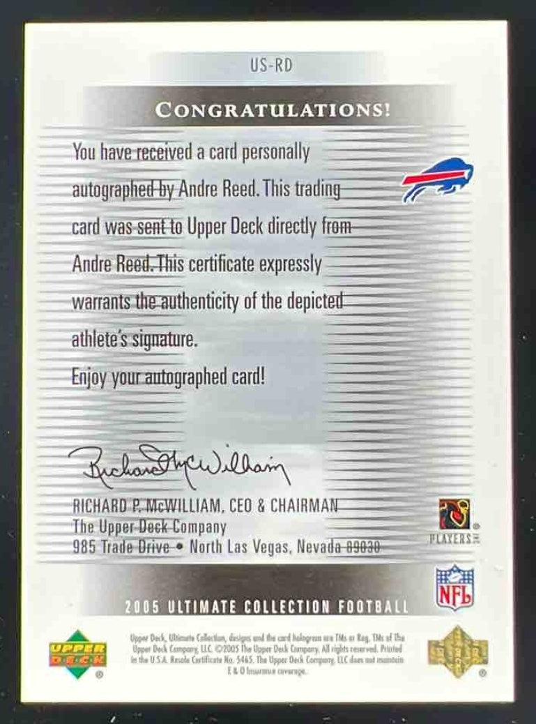 2005 Ultimate Collection Ultimate Signatures #US-RD Andre Reed Auto /99