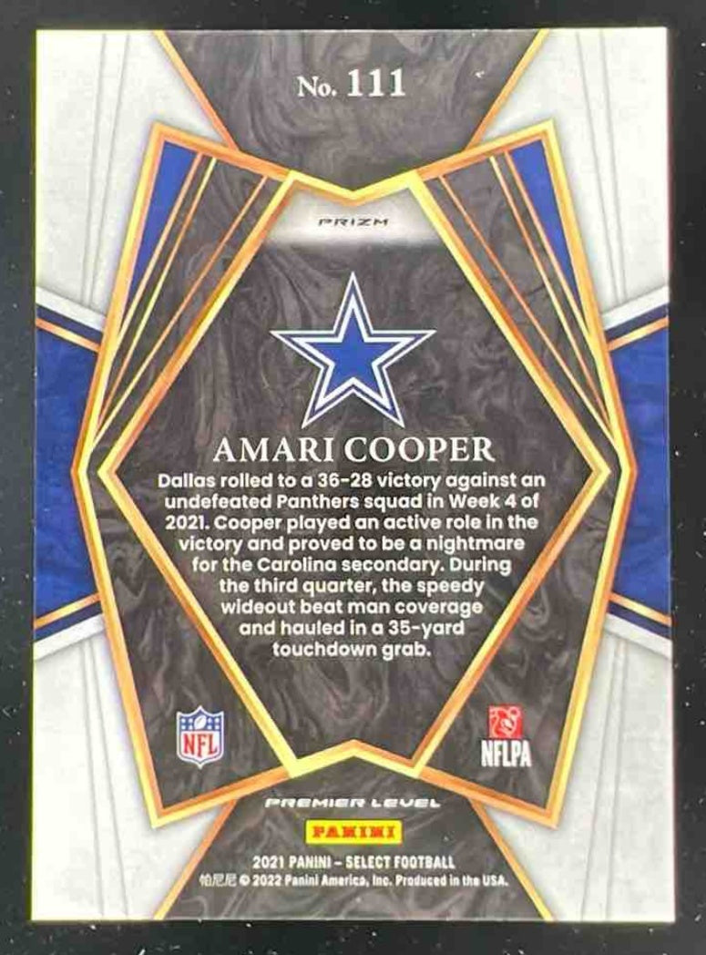 2021 Panini Select Zebra Prizm #111 Amari Cooper Premier