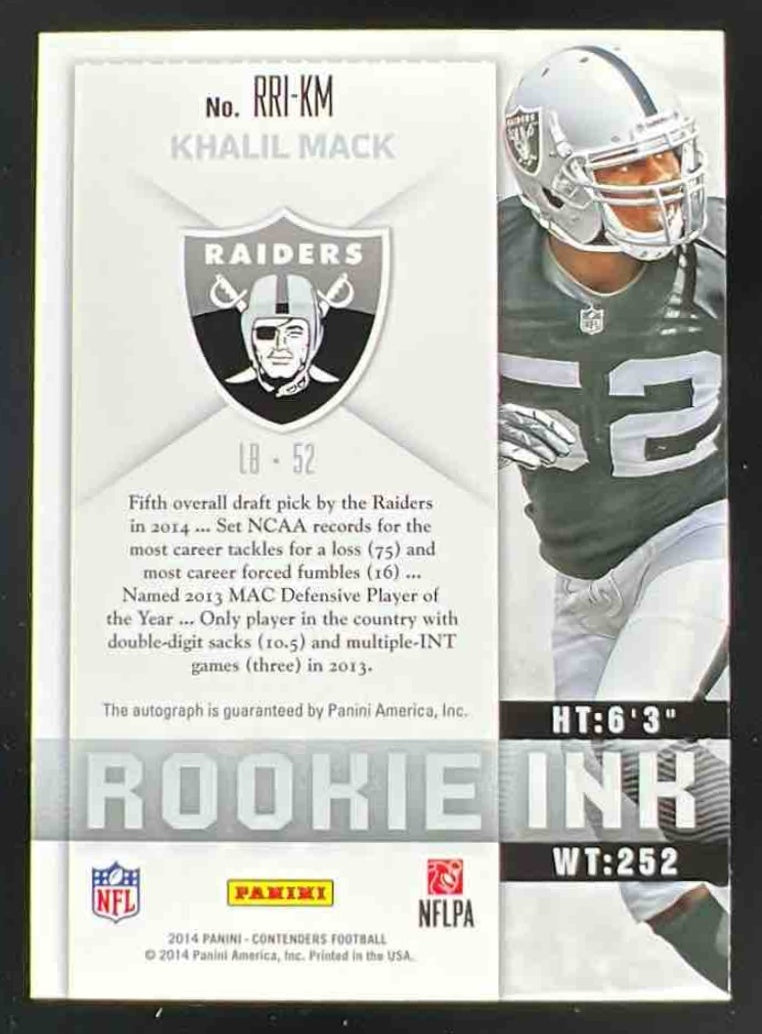 2014 Panini Contenders Rookie Ink Rookie Premiere #RRI-KM Khalil Mack RC Auto