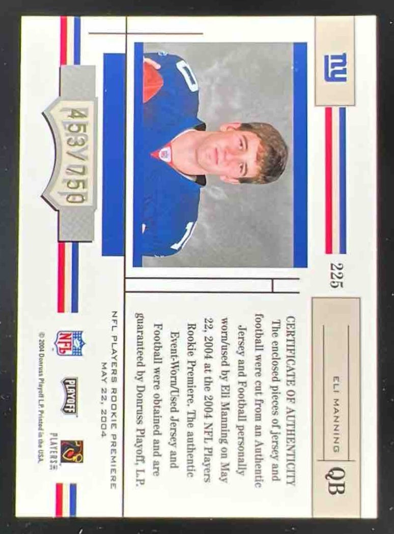 2004 Playoff Absolute Memorabilia #225 Eli Manning RC /750