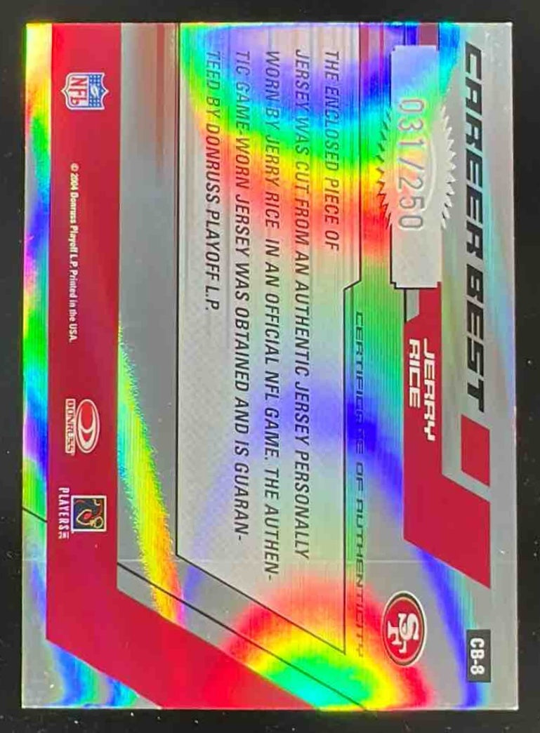 2004 Donruss Elite Career Best Jerseys #CB-8 Jerry Rice /250