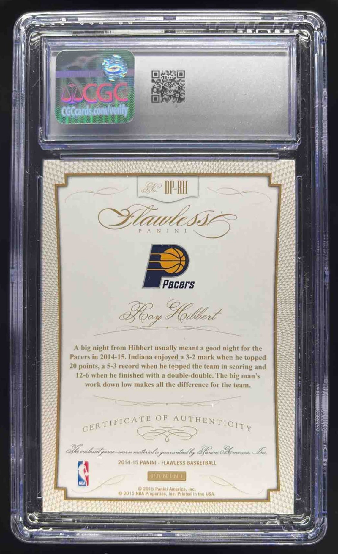2014-15 Panini Flawless Dual Patches Emerald #DP-RH Roy Hibbert /5 CGC 10