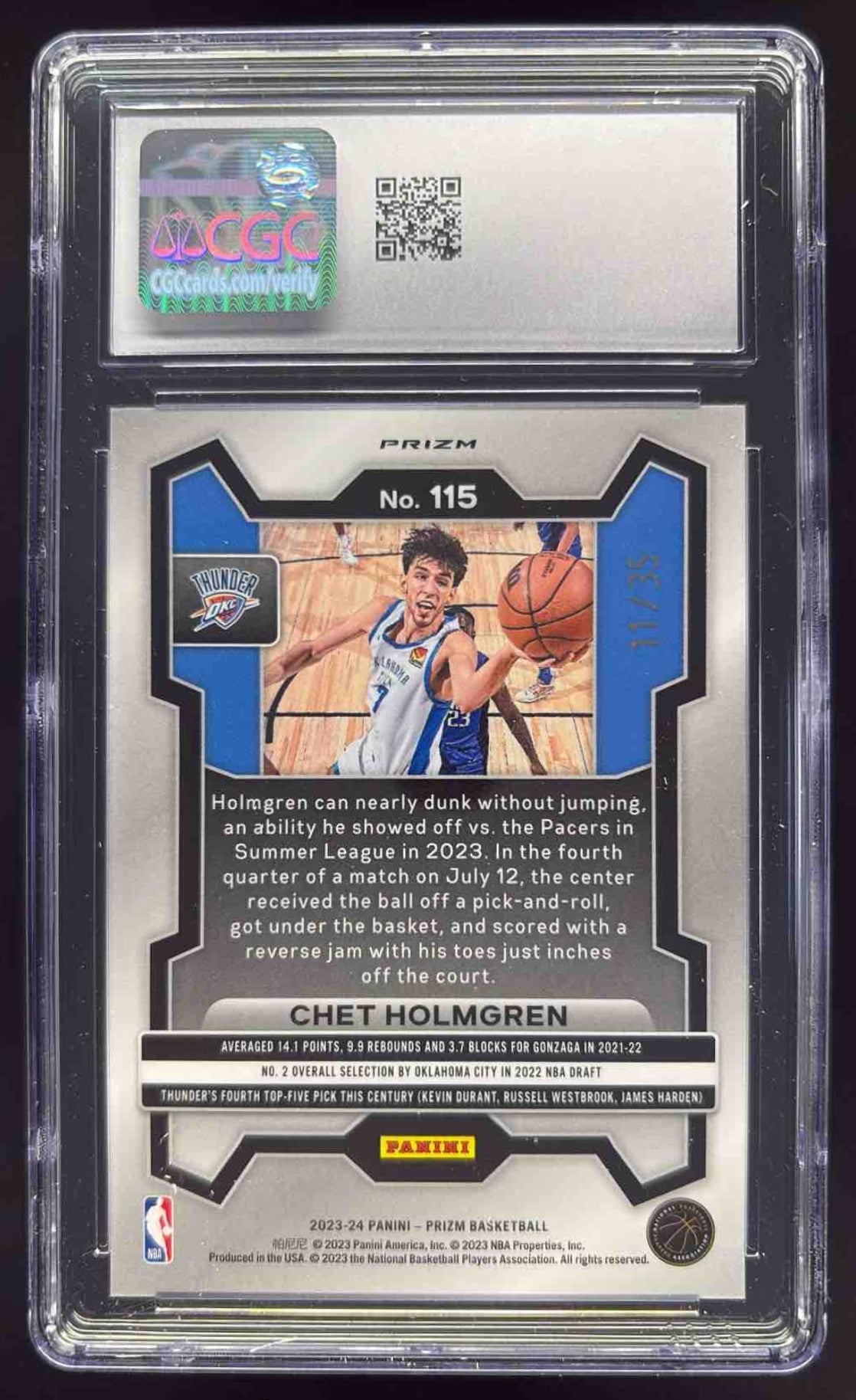 2023-24 Panini Prizm Prizms Blue Shimmer FOTL #115 Chet Holmgren /35 CGC 10