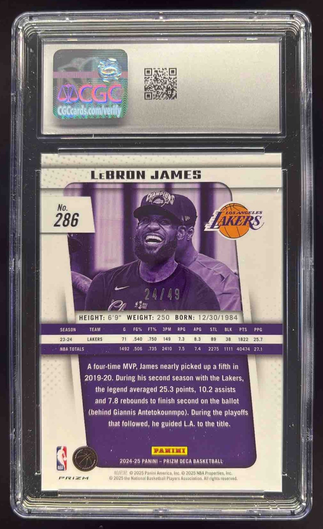 2024-25 Panini Prizm Deca Orange Prizms #286 LeBron James /49 CGC 10