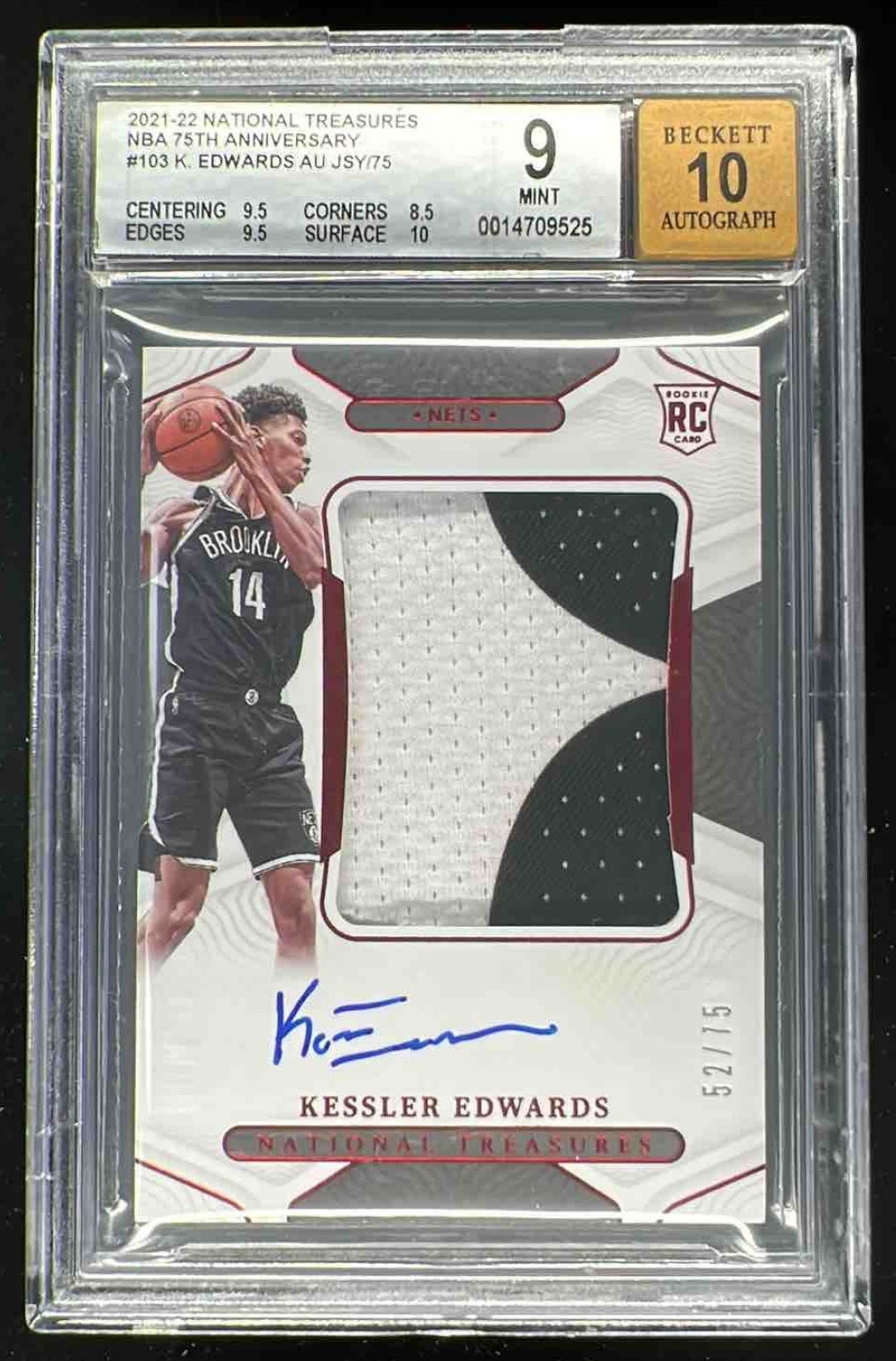 2021 National Treasures NBA 75th Anniversary Kessler Edwards RC Auto /75 BGS 9