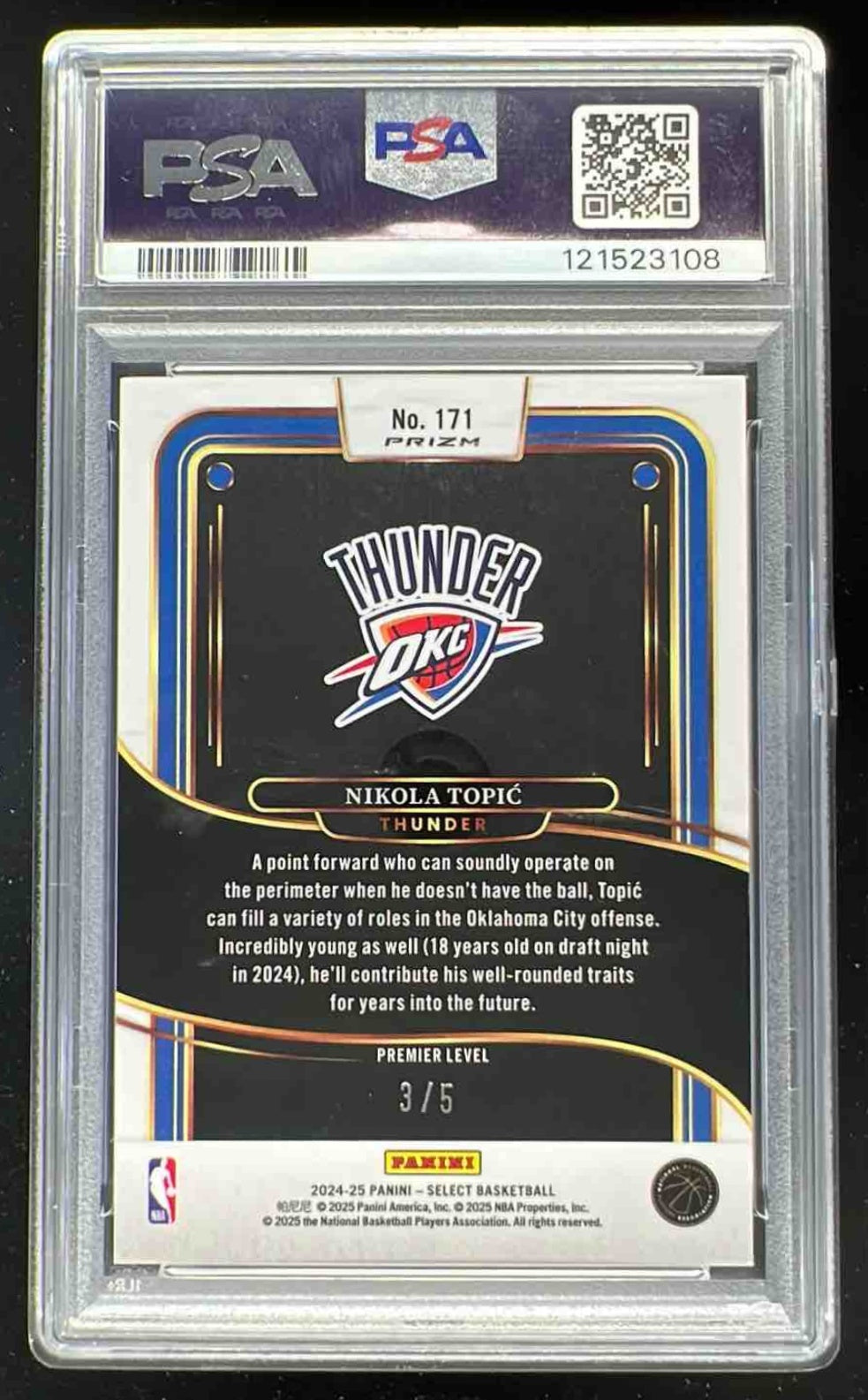 2024-25 Panini Select Premier Neon Purple Pulsar FOTL Nikola Topic RC /5 PSA 9