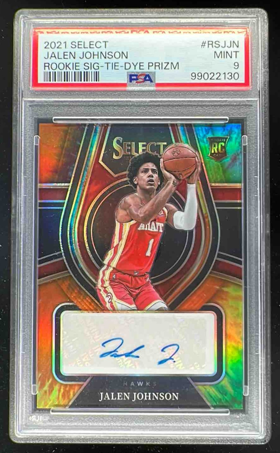 2021-22 Select Rookie Signatures Tie Dye #RS-JJN Jalen Johnson RC Auto /25 PSA 9