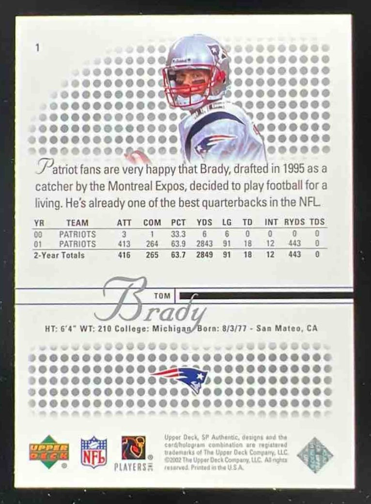 2002 SP Authentic #1 Tom Brady