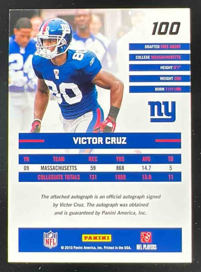 2010 Panini Donruss Rated Rookies Autographs #100 Victor Cruz RC Auto