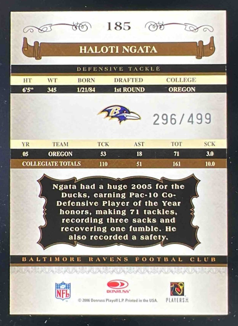 2006 Donruss Classics #185 Haloti Ngata RC Auto /499