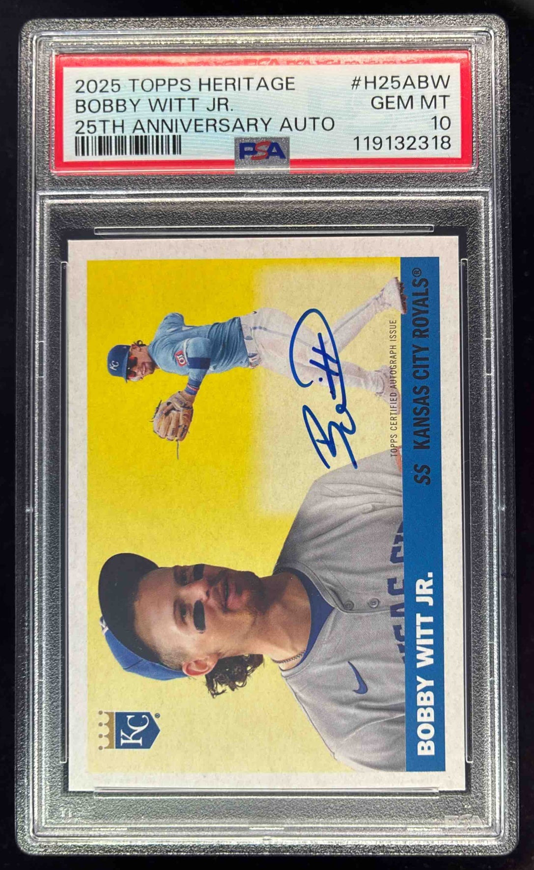 2025 Topps Heritage Heritage 25th Anniversary Bobby Witt Jr. Auto /200 PSA 10